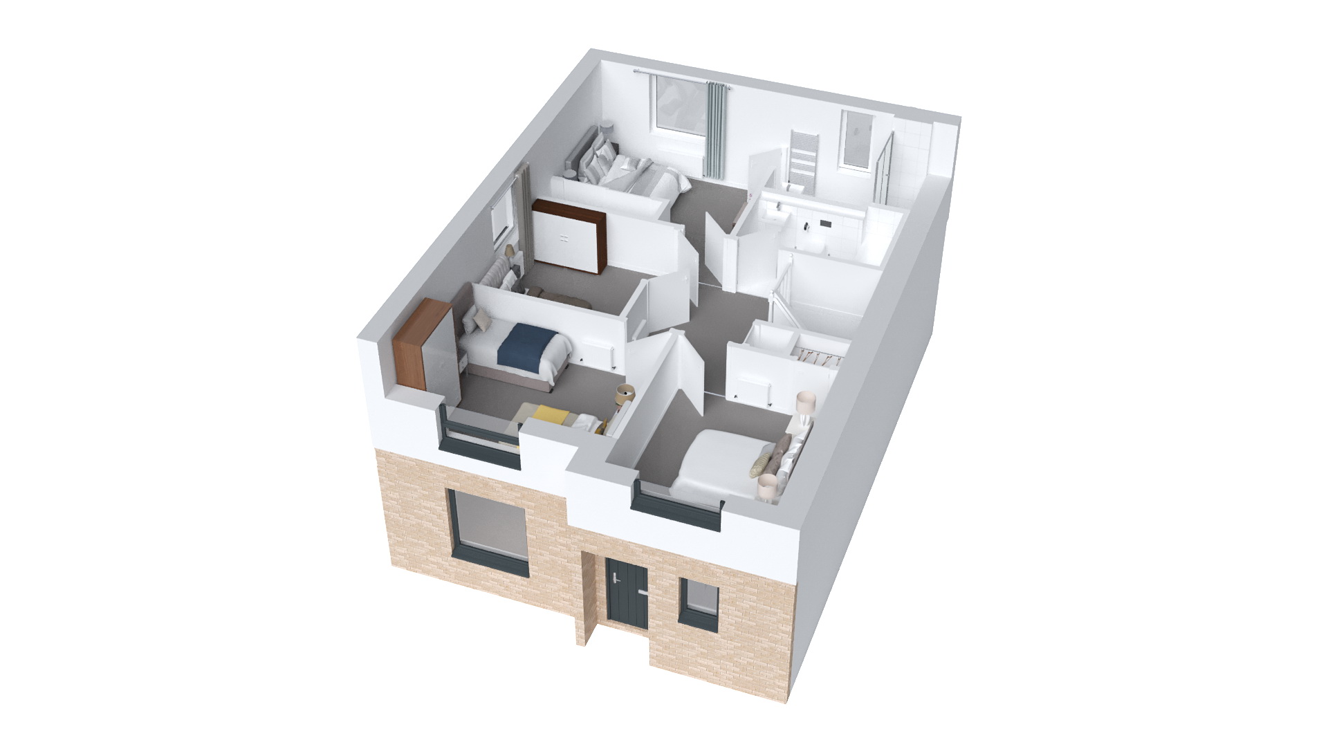 The Oliphant is designed with a spacious upper landing, which has a store cupboard perfect as an airing cupboard. Bedrooms two and three are both good size double bedrooms. Bedroom 3 has a built in wardrobe. Bedroom four is a double bedroom designed with flexible double doors, it could be your perfect home office/ craft space or a guest bedroom.