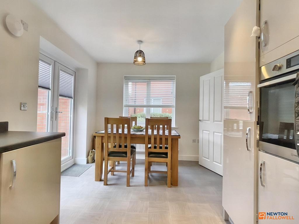 Briefly the accommodation comprises; entrance hall with stairs rising to first floor, W.C., and under-stairs storage cupboard. The kitchen is well appointed with wall and base units, worksurfaces, built-in oven, hob with extractor over, integrated fridge and freezer, plumbing for washing machine, windows to the front and side with patio doors leading out to the garden. The lounge has a bay window to the side, windows to the front and rear providing natural light. To the first floor there is a master bedroom with en-suite shower room, two further bedrooms and a family bathroom.
