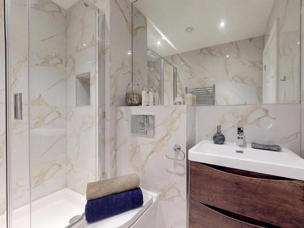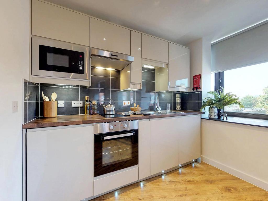 Each contemporary kitchen features integrated appliances, including a fridge-freezer, oven, hob and washer-dryer - completed with a marbled-finished en-suite with a rainfall shower.