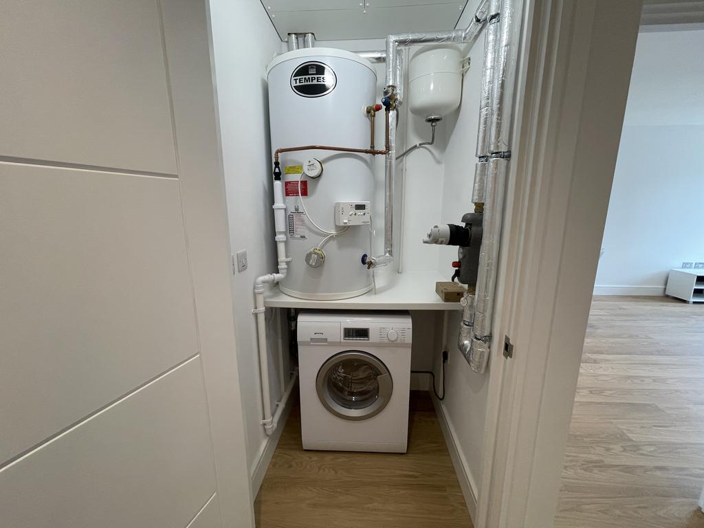 With allocated parking spaces and a communal garden, this apartment is perfect for those seeking a contemporary lifestyle. Furnished with essential appliances such as a washing machine and dishwasher, you'll have everything you need at your fingertips.
