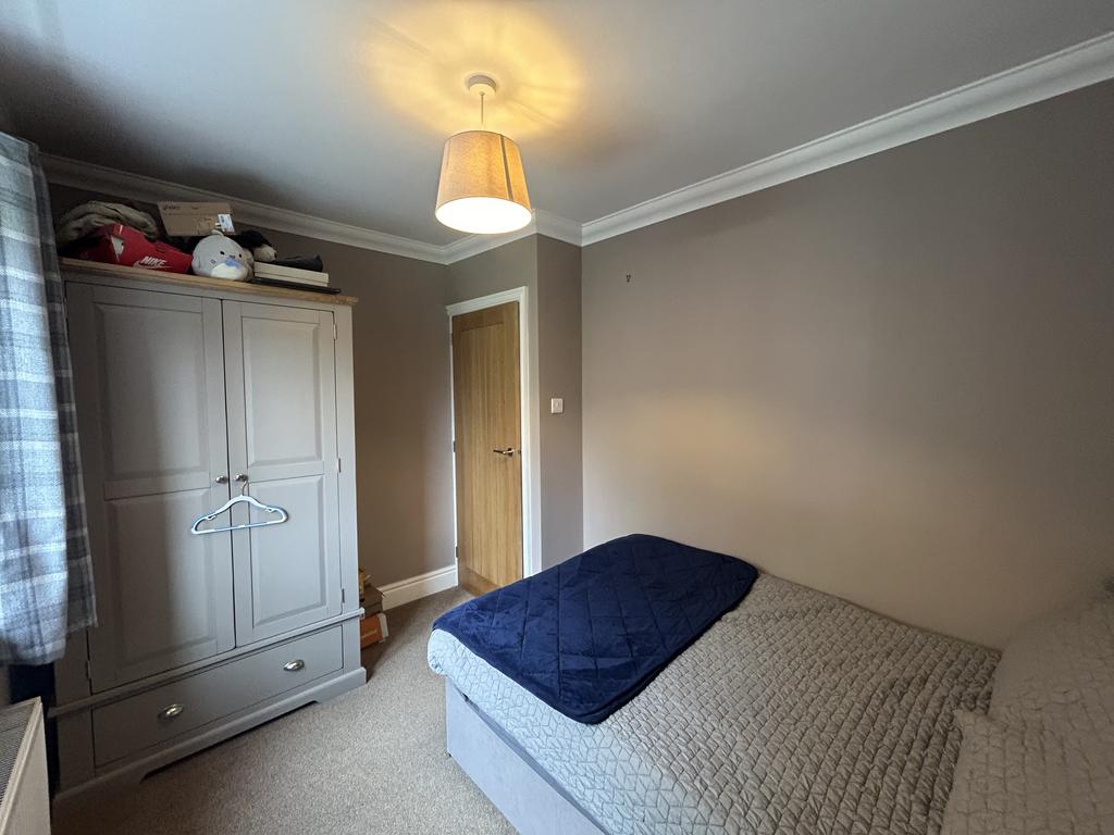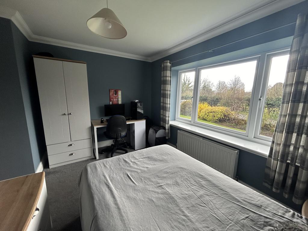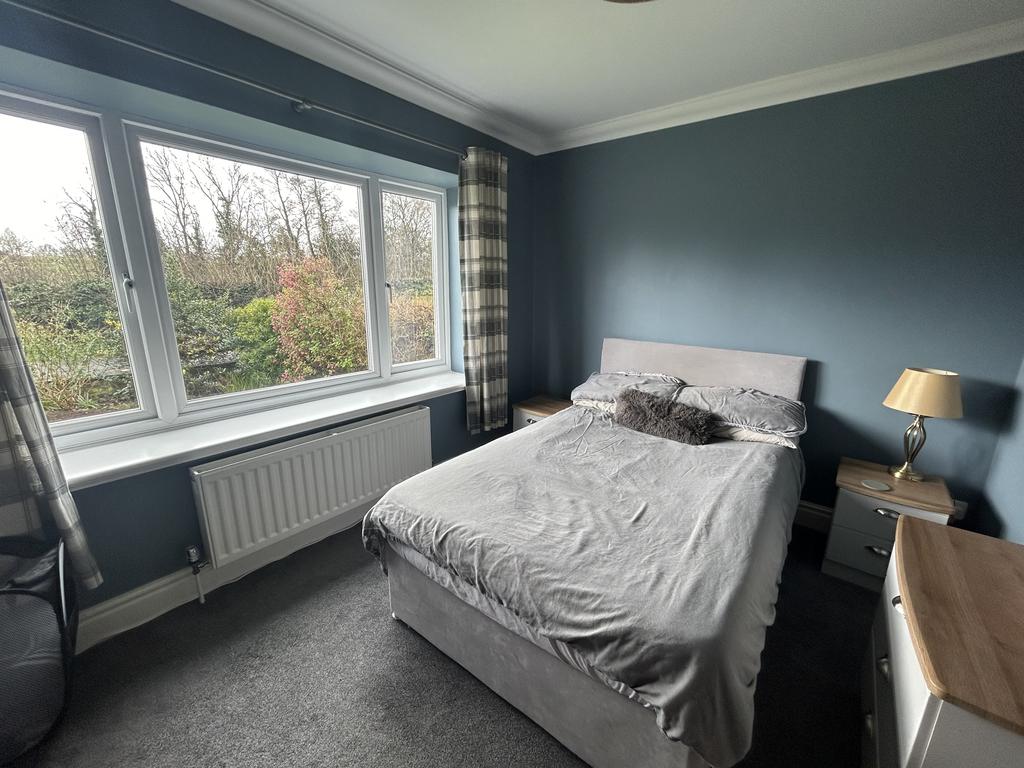 Bedroom 3 (3.30 m x 2.42 m) Double Bedroom with large upvc picture window, radiator, pendant light and fitted carpet.