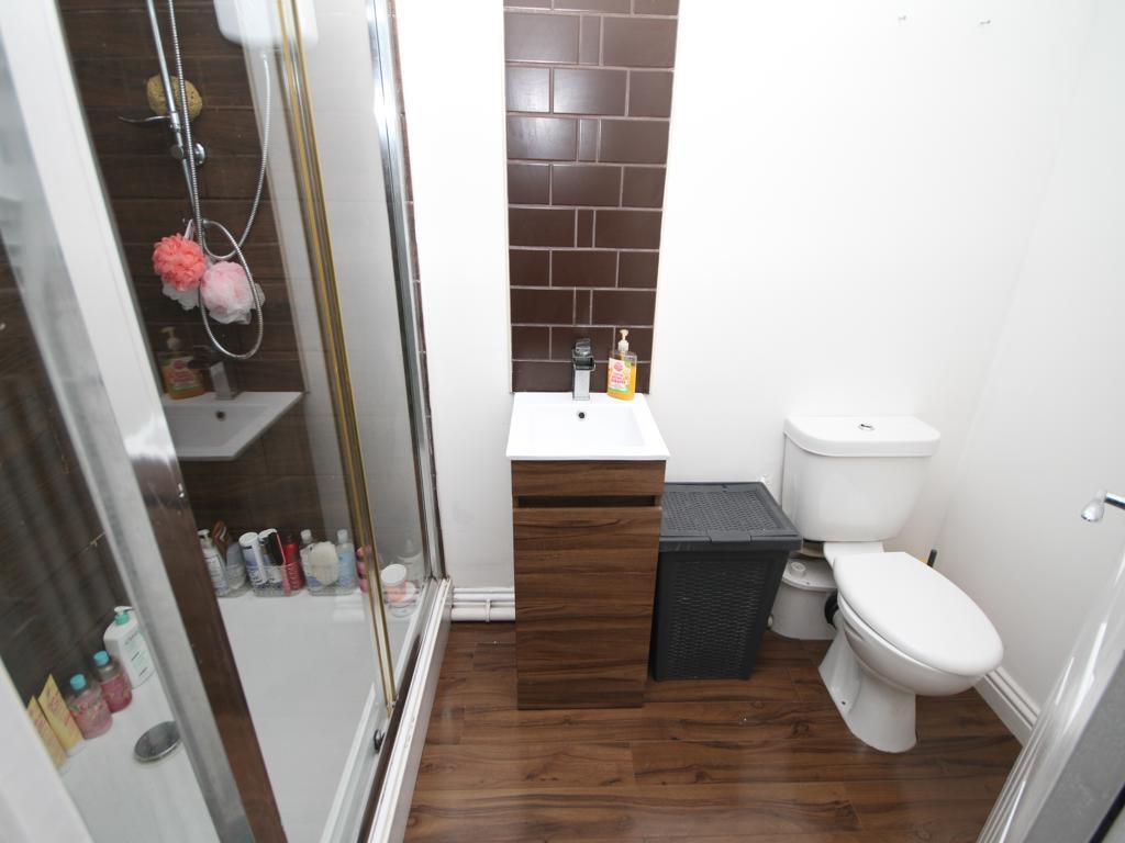 En Suite Shower Room - Modern three piece suite comprising shower cubicle, low suite wc, pedestal wash basin, radiator and extractor fan.