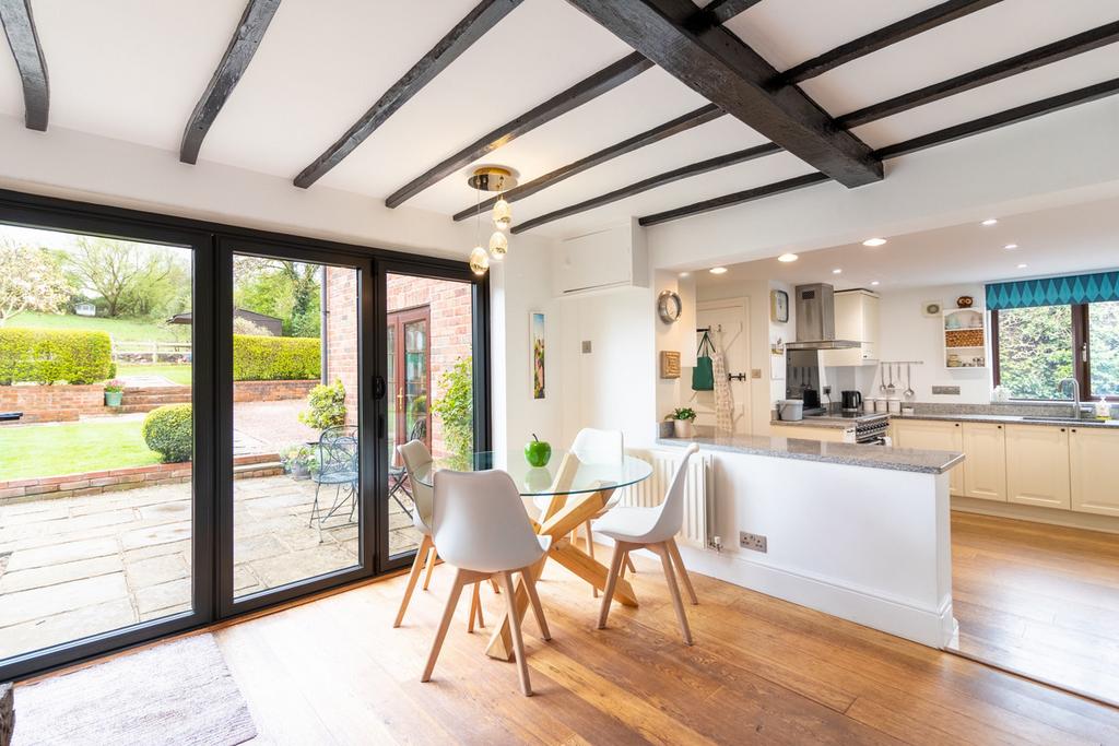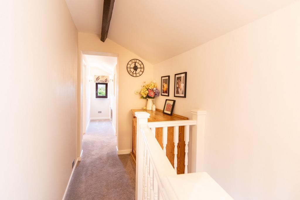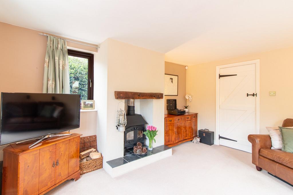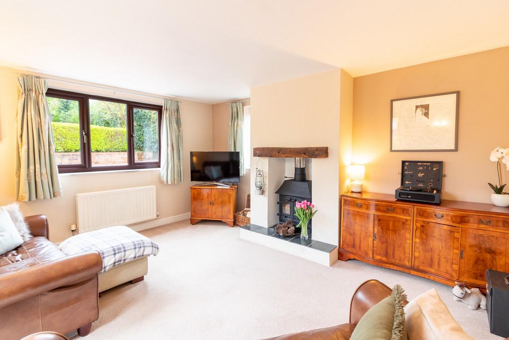 Leading from the dining area is the second reception room. This charming room offers a cosy family room in winter with its log burner and exposed beams, and is beautifully decorated with a feature wall, neutral décor, oak flooring and a large window, again enjoying those unspoilt rear views.