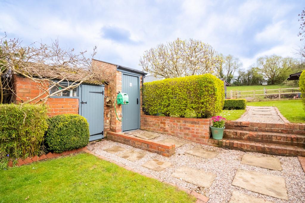 Enjoying all the benefits of owning your own equestrian facilities at the end of your garden really is the icing on the cake for Stable Cottage. Not only do you enjoy beautiful cottage gardens with a large terrace and south facing raised decked area for al fresco dining and entertaining, lower and upper lawned areas, with a flagstone pathway leading to a second higher decked terrace, a very useful brick built original storage shed and gardener’s loo, ample private parking behind your gated entrance to your generous gravelled driveway, and lovely mature borders filled with some beautiful flowering shrubs and trees, but also your very own stable yard, with three loose boxes, a tack room, hardstanding and circa 1.2 acre paddock beyond. There is also a further outbuilding behind one of the stables and a large double garage block and workshop. Conveniently located, the land wraps around your neighbour’s property to a second double gated entrance into the field from the road, making it easy for horse transport in and out and giving you additional parking space.