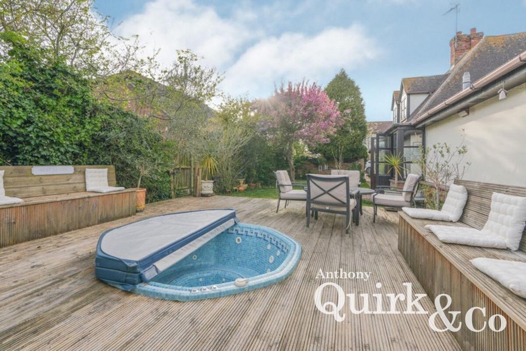 Situated on a completely secluded site, it boasts an expansive plot over three times the size of any comparable residence along the prestigious golf course. Positioned on a coveted corner plot, revel in breathtaking 180-degree panoramic vistas of the idyllic Country Park, Hadleigh Castle, and the verdant greens of the golf course. Offering direct access to both the golf course and scenic sea wall walks, indulge in a lifestyle of leisure and serenity.