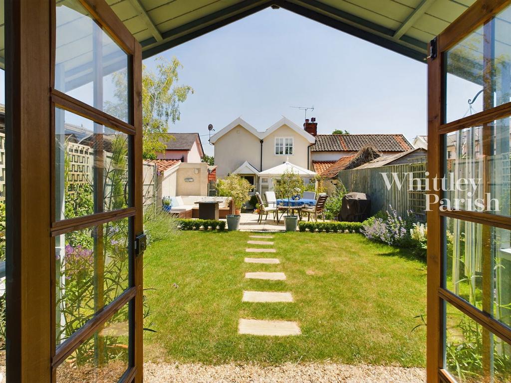The rear gardens are generously sized, beautifully landscaped, and a standout feature. Thoughtfully designed and planted, they promise an abundance of vibrant colours throughout the summer. Attractive brick walling and steps lead to a paved patio area, perfect for alfresco dining, which opens onto a lawn area bordered by well-stocked flowerbeds. The garden is enclosed by concrete posts and panel fencing, leading to a well positioned timber summer house. To the front the property has views over a paddock.