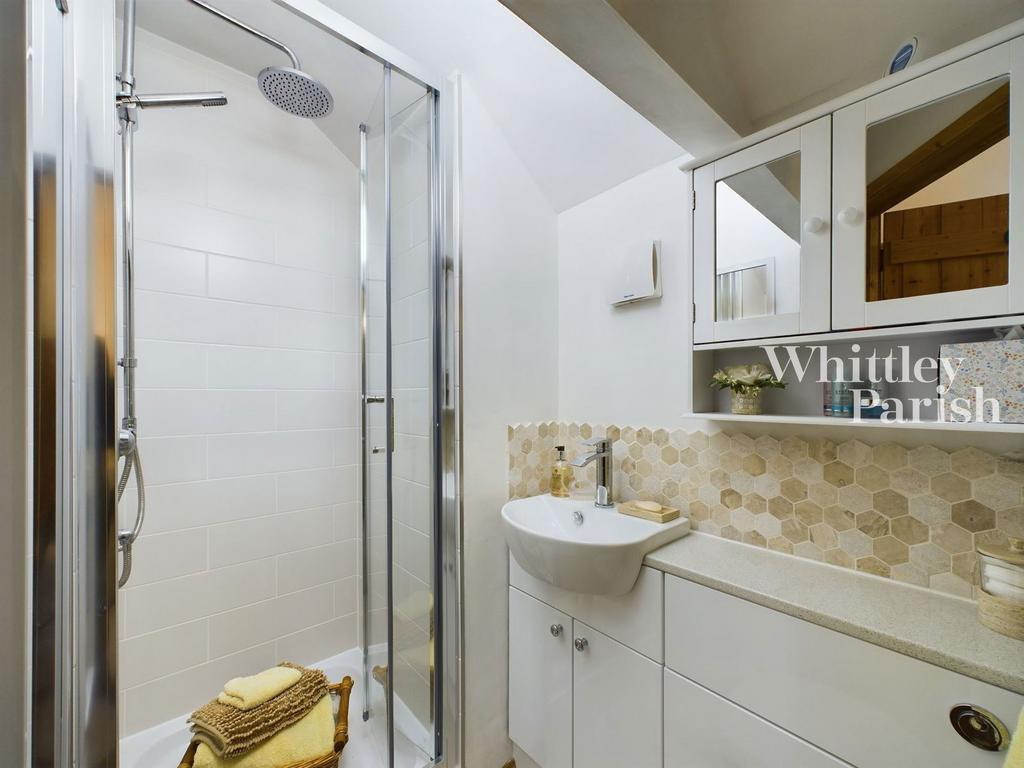 Having just been refitted and immaculately presented with tiled shower cubicle, low level wc and hand wash basin over vanity unit. Heated towel rail to side.