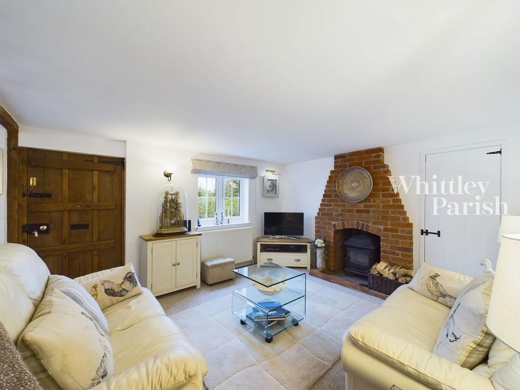 Found to the front of the property being a light, bright and airy room with focal point being the fireplace with mellow red brick surround and exposed chimney breast and inset cast iron stove upon a brick hearth. Deep storage cupboard to side. Exposed timbers and beams.
