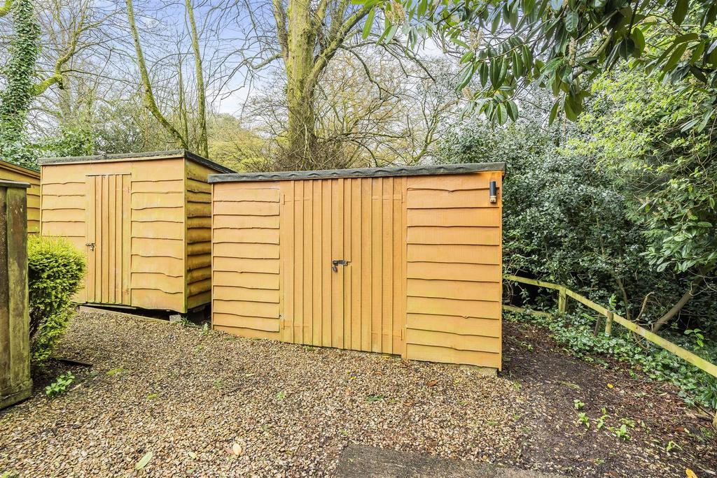 Timber Shed - To the side through the small arch is a large timber garden shed (the end one) with a concrete floor and electricity connected, adjacent to this is space in front of the shed for addition parking.