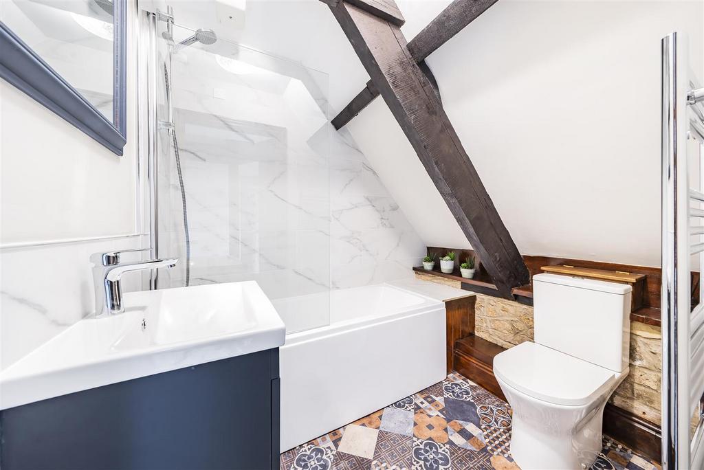 There are two double bedrooms, the largest bedroom has an en-suite with under floor heating, built in wardrobe and similar exposed beams and stonework that are echoed in the sitting room. There is also a recently replaced family bathroom.
