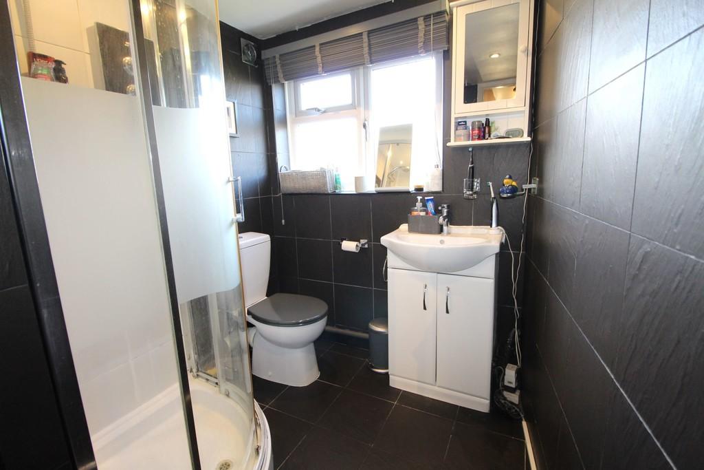 SHOWER ROOM uPVC obscure double glazed window to rear elevation, chrome wall mounted heated towel rail, re-fitted three piece suite comprising low level W.C, wash hand basin with mixer tap over set into cupboard unit, fully tiled shower cubicle with fitted shower over, tiled to all elevations, tiled flooring, sunken spotlighting, extractor fan, built in storage cupboard.