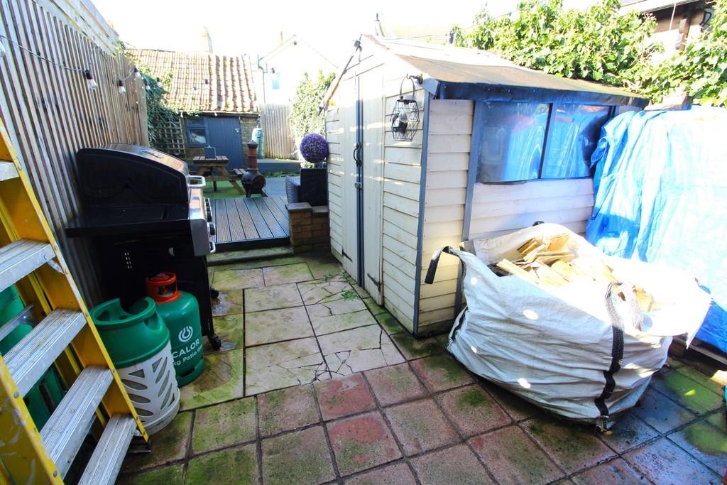 REAR GARDEN Fully enclosed generous rear garden, initial paved patio area with outside tap, ample raised timber decking seating area with small artificial lawn area, gated access to side with right of way access, personnel door to: