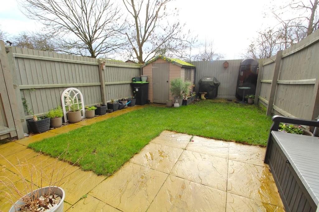 REAR GARDEN Fully enclosed rear garden, initial paved patio area with outside tap, mainly laid to lawn, timber shed.
