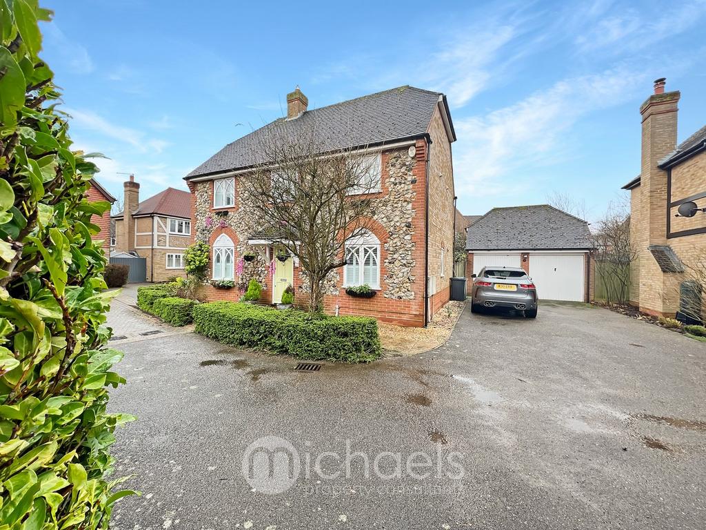 Occupying a private and secluded Cul De Sac position within the frequently requested Great Notley Garden Village, Michaels Property Consultants are delighted to present to the market this four bedroom detached house, offered for sale with no onward chain. New to the market and offered for sale in excellent order throughout, this contemporary property lends itself well to a purchaser seeking a versatile family home in an fantastic location offering an excellent range of local amenities, as well as easy access to the A131. The internal accommodation comprises an entrance hall that provides access to the first floor, a ground floor cloakroom, a generous lounge with French doors out to the rear garden, a dining room, a 21' kitchen/diner with a separate utility room, four well appointed bedrooms with an en suite to the master, and a recently refitted family shower room. Outside, the property is further enhanced by having a 50' South facing, un-overlooked rear garden, a double garage, and a driveway that provides off road parking for 3/4 vehicles.