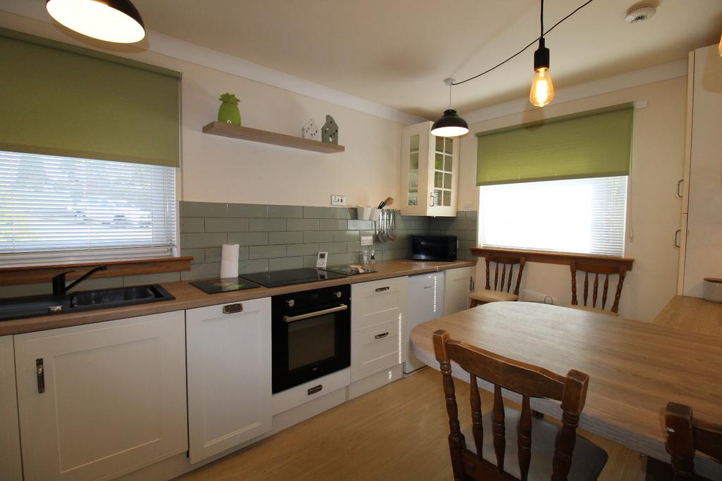 Accommodation comprises:- large lounge with area for dining, fully fitted kitchen with breakfast bar and appliances including electric hob and oven, fridge, freezer and washing machine, two double bedrooms with fitted wardrobes and modern shower room.