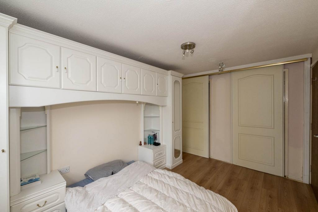 Rear facing double bedroom with fitted robes along with a further storage/robe area with sliding doors.