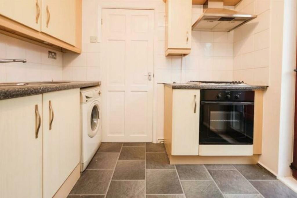 Fitted Kitchen to Rear 8' 10" x 8' 8" (2.69m x 2.64m) Being fitted with a range of wall, base and drawer units with a work surface over incorporating a sink and drainer unit with mixer tap over, further incorporating a 4 ring gas hob with extractor hood over and oven below. Space and plumbing for washing machine, wall mounted gas central heating boiler, tiling to splash back areas, tile effect flooring, ceiling light point and a glazed door and window to the rear aspect