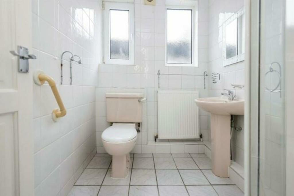 Shower Room to Side 6' 10" x 5' 4" (2.08m x 1.63m) Being fitted with a suite comprising of a corner shower enclosure, pedestal wash hand basin and a low flush W.C. Radiator, tiling to full height and floor, ceiling light point and two obscure double glazed windows to the side elevation