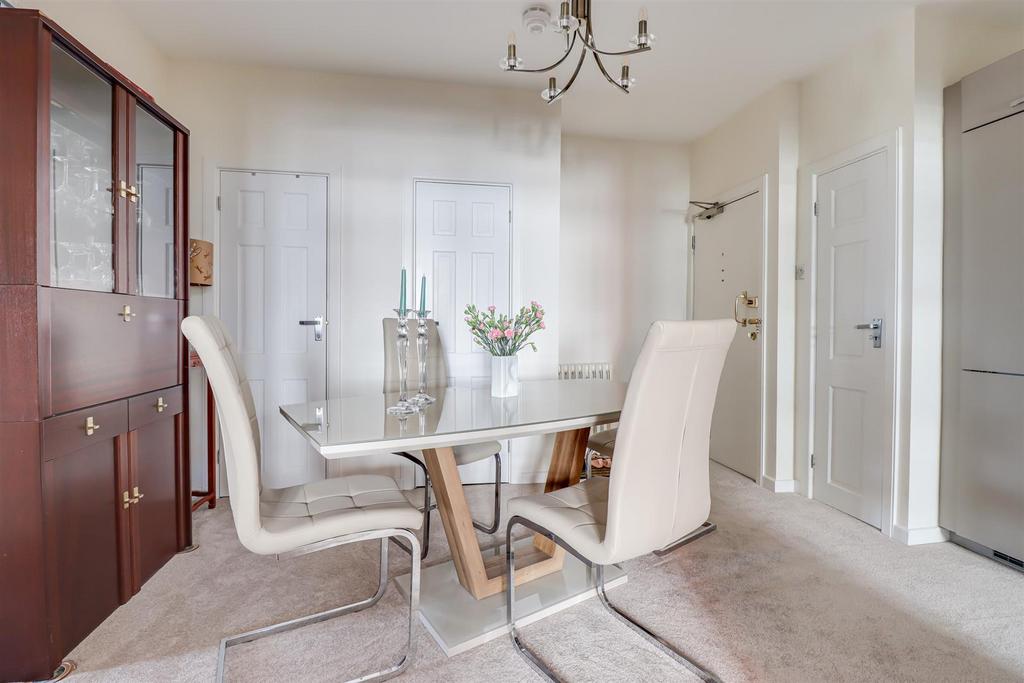 Entrance Hallway/Dining Room - 4.99m maximum x 3.23m maximum (16'4" maximum x 10 - Three large built in storage cupboards, smooth ceiling with a feature light, traditional radiator, floor to ceiling integrated fridge freezer, carpet, door to: