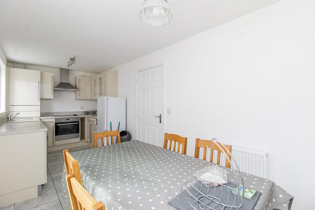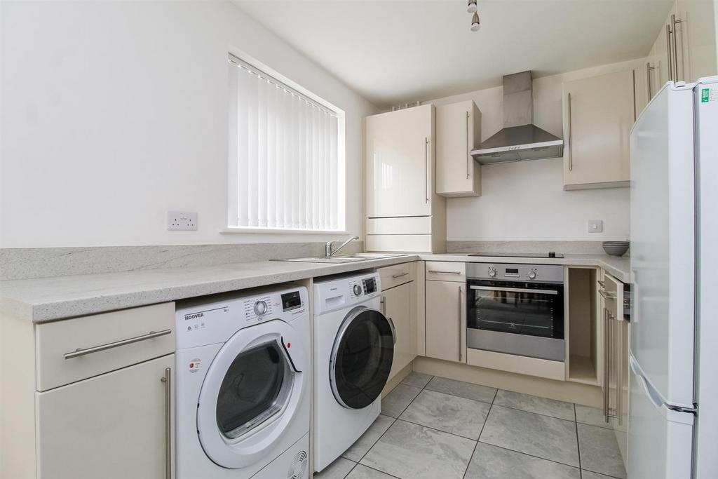 Kitchen/Diner - 5.73m x 2.32m (18'9" x 7'7") - A range of modern wall and base units with laminate work surface over, 1 1/2 stainless steel sink and drainer with mixer tap, four ring electric hob, integrated oven with stainless steel extractor hood, space for a fridge/freezer, space and plumbing for a washing machine and tumble dryer. A set of UPVC double glazed french doors and windows to the rear garden, central heating radiator and the boiler is housed in here.