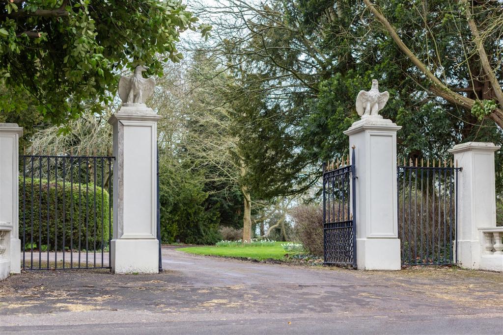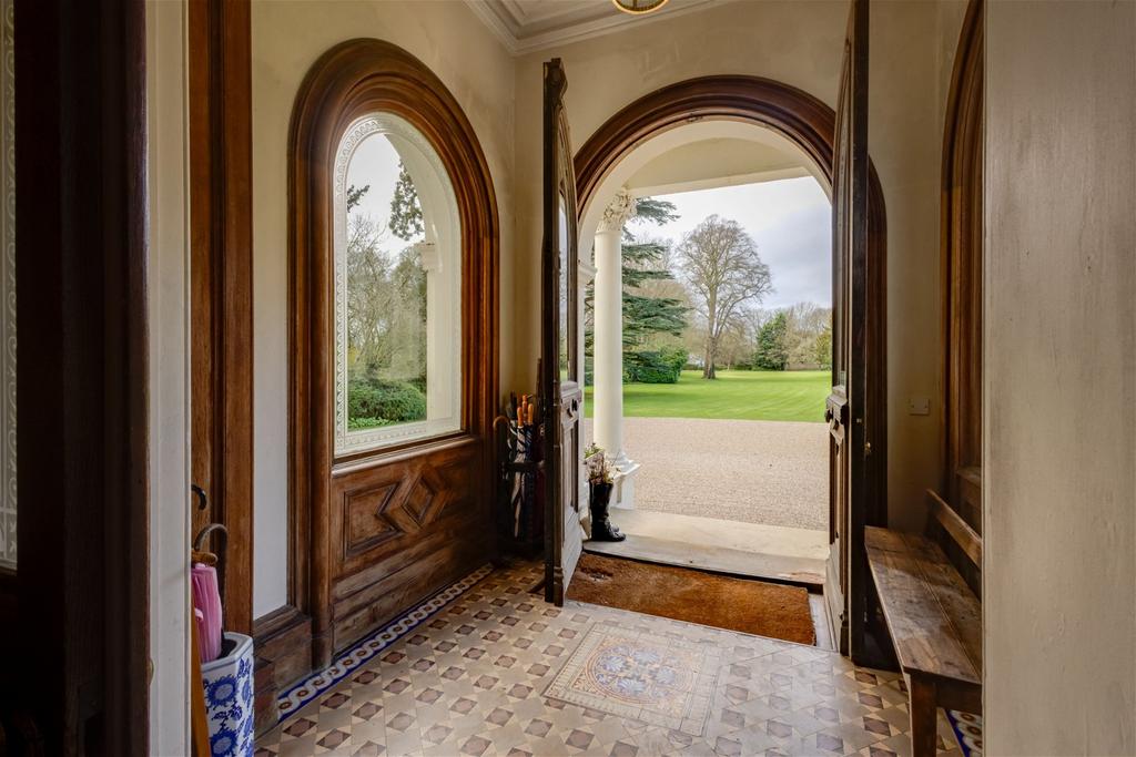 The Hall is approached by its own long driveway approach through formal lawns with mature specimen trees leading to the grand front entrance to the West aspect. A rear tradesmen driveway leads to the North side with garaging and outbuildings. The grounds are largely South-facing boasting a formal pavilion terrace with steps leading down to swimming pool, tennis court and large expanse of lawn which could be turned to paddocks for the equestrian enthusiasts.