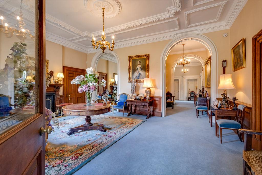 The extensive accommodation offers to the ground floor a reception hall, study, sitting room, vast drawing room with a total of 6 sash windows to enjoy views of the grounds, formal dining room, ballroom and large orangery. A further hallway leads to the living kitchen, scullery, morning room, breakfast room, study, cloakroom and billiards room. The scullery gives access to a self-contained butler’s flat, with a reception room, kitchen and bedroom above. A grand staircase from the main hall leads to the first floor, offering a total of 9 bedrooms and 6 bathrooms. The second floor offers a further 11 bedrooms, 2 bathrooms and a self-contained flat with kitchen diner and living room. The Hall also has a 24-room cellar complex, which could lend itself to conversion to indoor swimming pool, spa and gym facility.