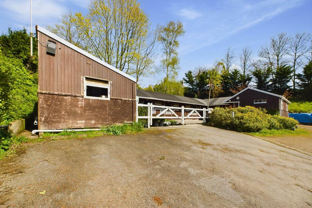 Timber built stable block with 7 loose boxes, together with tack room and hay/feed storage.