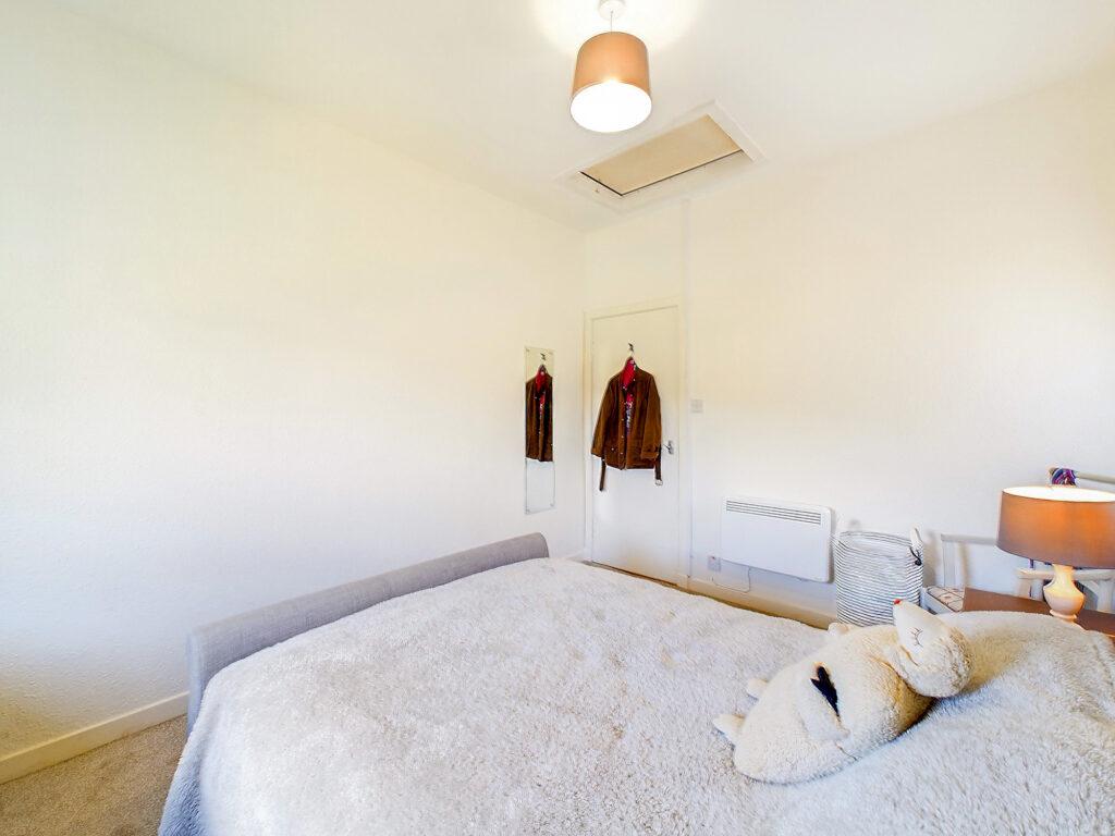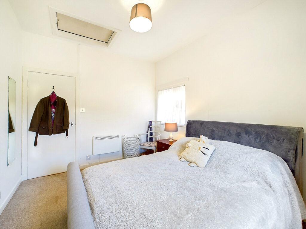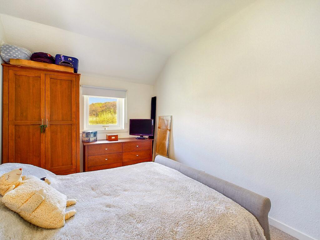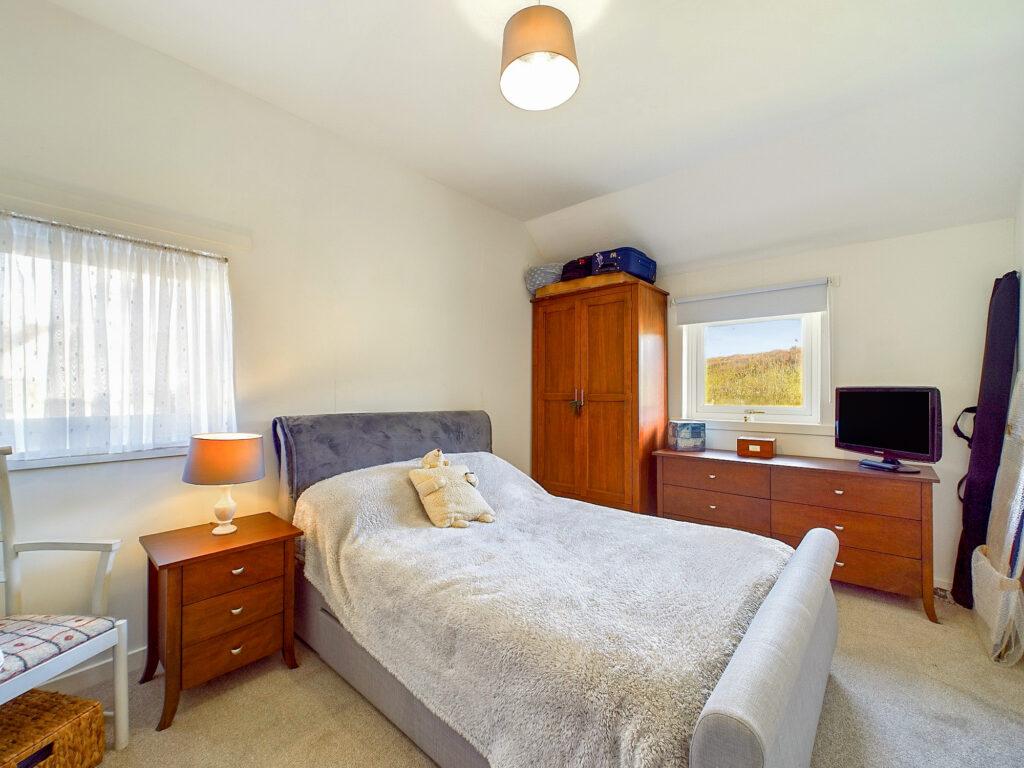 Double bedroom with dual aspect loch and rural views to front and side. Plenty of space for freestanding bedroom furniture and loft hatch access, Dimplex panel heater, carpeted flooring and socket points.