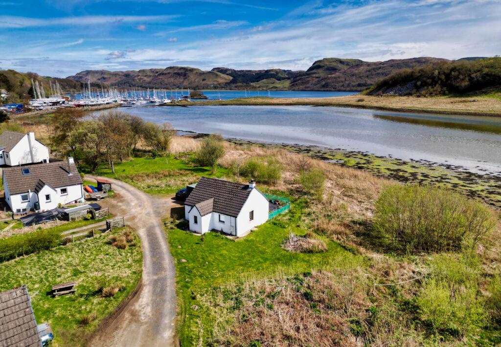 A rare opportunity to acquire a delightful cottage with stunning loch views and direct shore access. Nestled in a hamlet of similar properties in a peaceful semi rural location with uninterrupted views to Loch Craignish and ‘The Paps of Jura' in the distance. The “lagoon” to the front of the cottage and grounds surrounding the property attract an abundance of local wildlife on a regular basis. Ideally located between Oban and Lochgilphead the popular sailing village of Ardfern offers boat storage, launching and moorings facilities, primary school, a well stocked shop, Hotel and restaurant and other amenities. Comprises; Open plan lounge/diner/kitchen (new kitchen supplied for installation and unboxed engineered oak flooring for open plan area and hallway included in sale), double bedroom and bathroom. The property further benefits from recent re-rendering, guttering, exterior doors and glazing. Prewiring for solar panels is in place, an open fire, Dimplex Quantum energy efficient off peak and panel heating, double glazing, generous sized gardens, private driveway with parking for multiple vehicles and loft storage. 4G, broadband and digital TV are available.