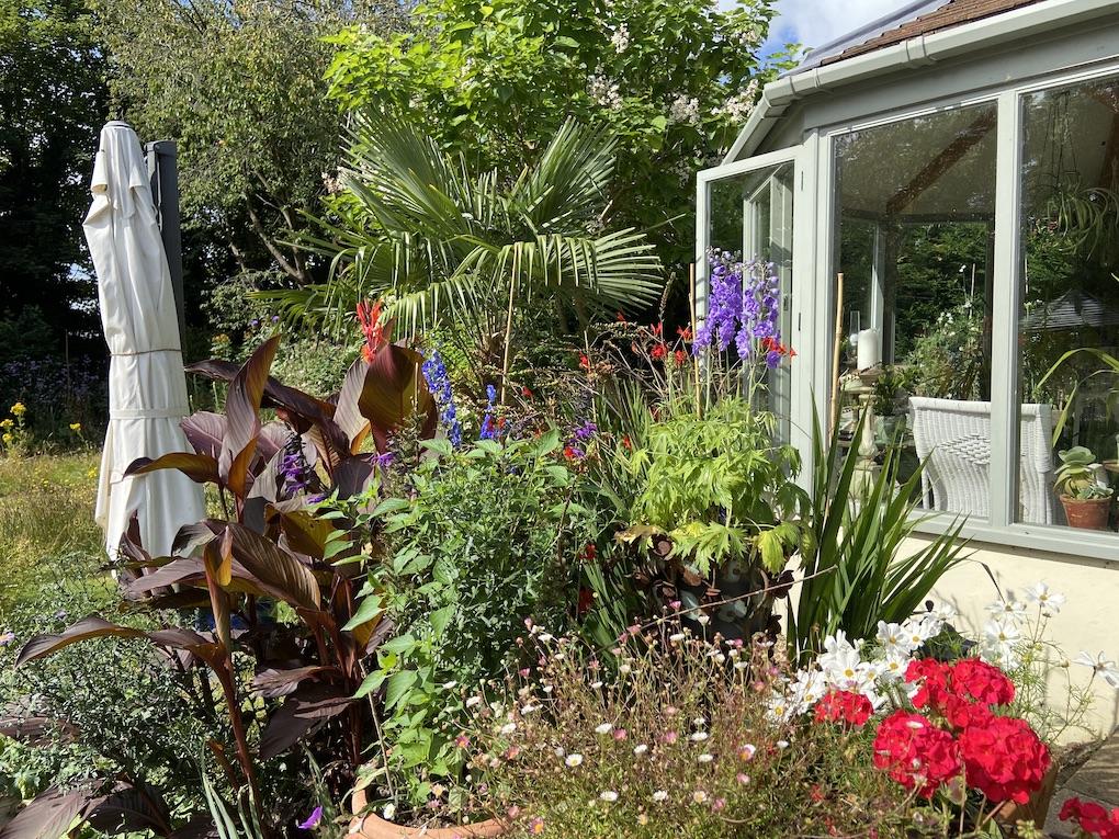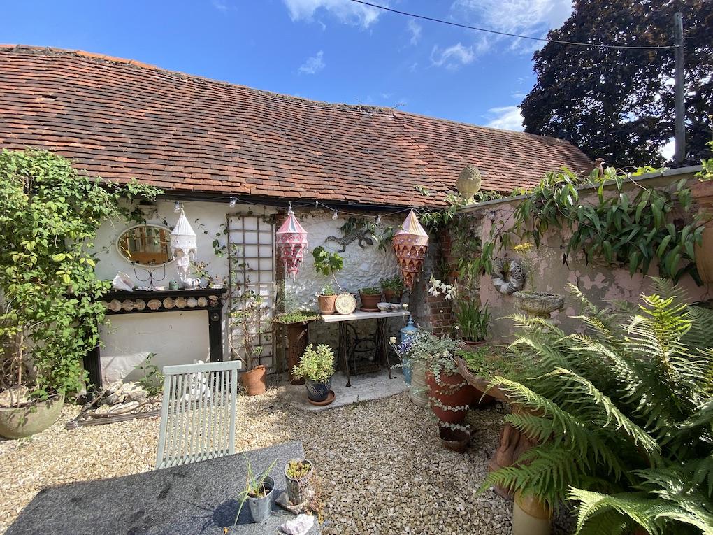 From the kitchen, a door leads to the smaller 'snug' reception room, with original wood block flooring carpets, a wood-burner, wall-mounted lighting and a window overlooking the garden. Through to the oak-beamed conservatory-style garden room - a robust and welcoming space, with a panoramic view of the garden, vaulted ceiling and stone floors. It has doors to the garden.
