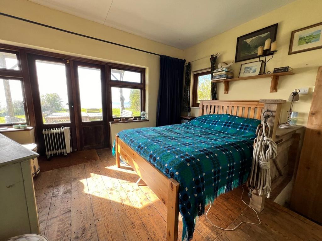 10' 9" x 13' 5" (3.28m x 4.09m) with glazed double doors to rear with breathtaking views over Cardigan Bay, double glazed window to side, exposed timber flooring.