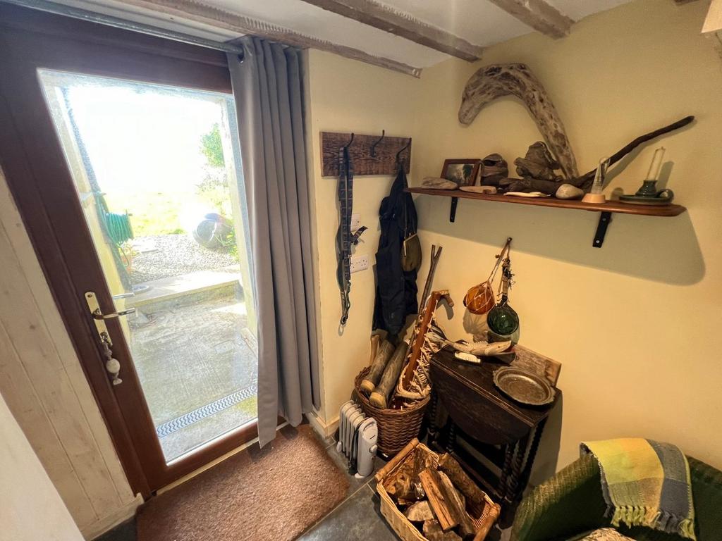 6' 4" x 5' 8" (1.93m x 1.73m) with glazed exterior door, slate flooring, exposed beams.