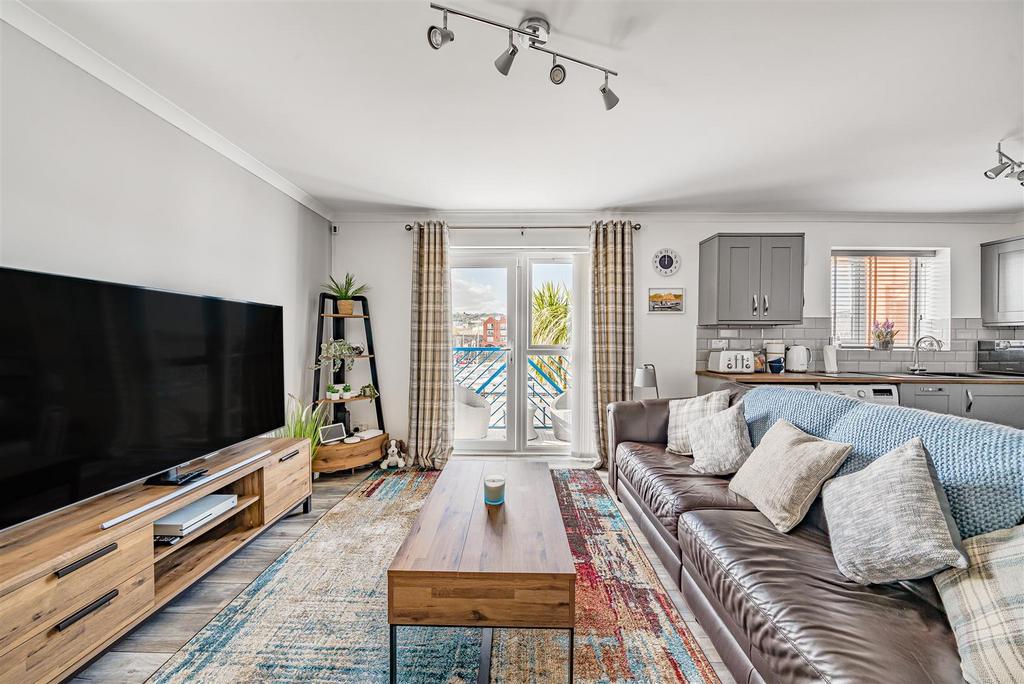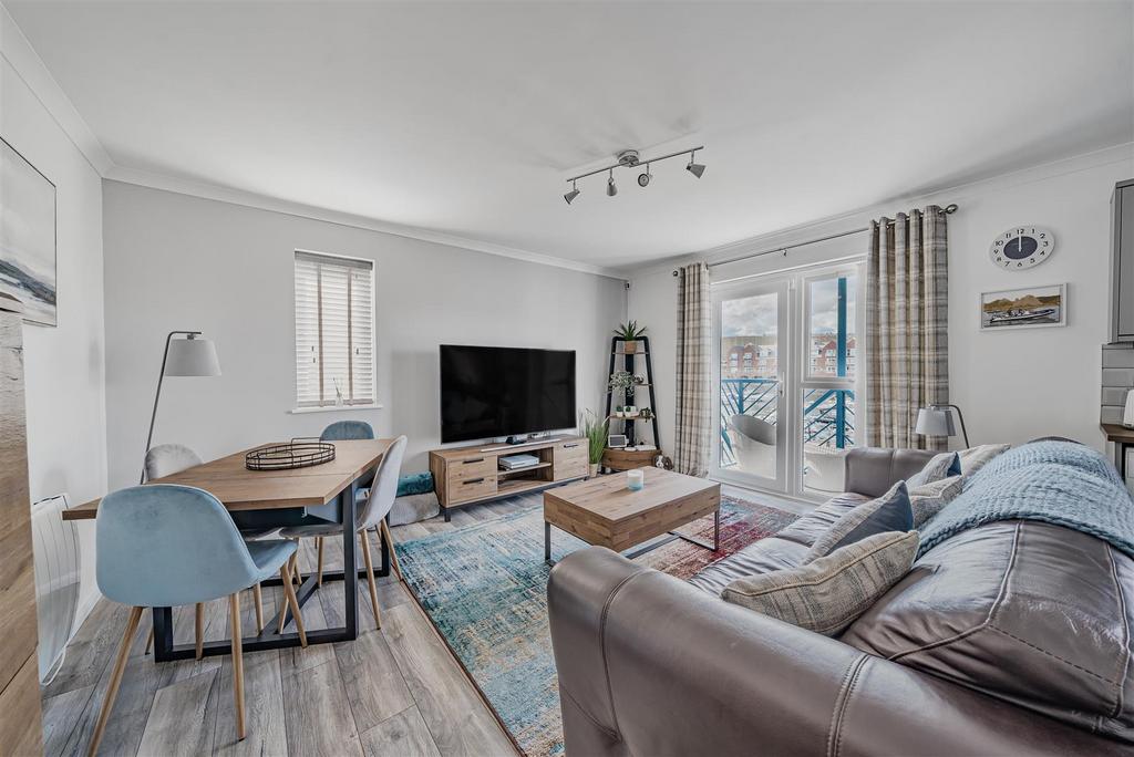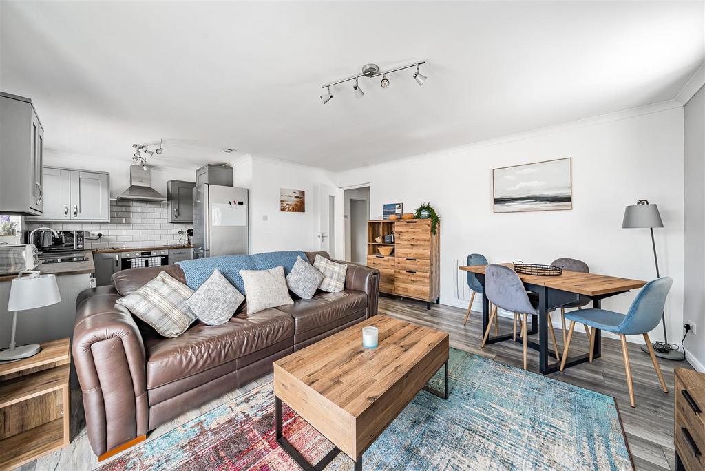 Open Plan Living Room/ Diner/ Kitchen - 6.5 max x 4.4 (21'3" max x 14'5") - Lounge – UPVC double glazed window to side, uPVC patio door to front leading on to balcony with views, coved ceiling, wall mounted energy efficient electric radiator, laminate flooring .
