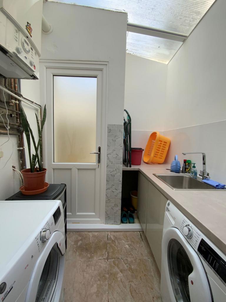 Utility Room - 2.02m x 2.15m (6'7" x 7'0") max. Fitted with a small range of wall mounted cupboard units with a rolled edge work surface above. Inset one bowl stainless steel sink unit with mixer tap within the work surface. Space and plumbing for a washing machine and tumble dryer. Gas combination boiler. Double glazed door with frosted window to the side aspect leading up the steps to the rear garden. Paved flooring.