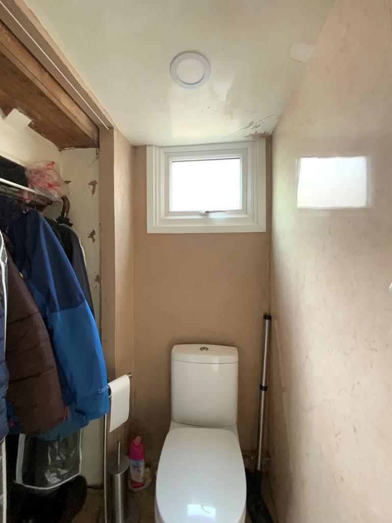 Downstairs W/C A push button W/C along with a fitted ceiling down light. Frosted double glazed window to the side aspect. Hanging storage space under the stairs. Wood effect hard flooring.