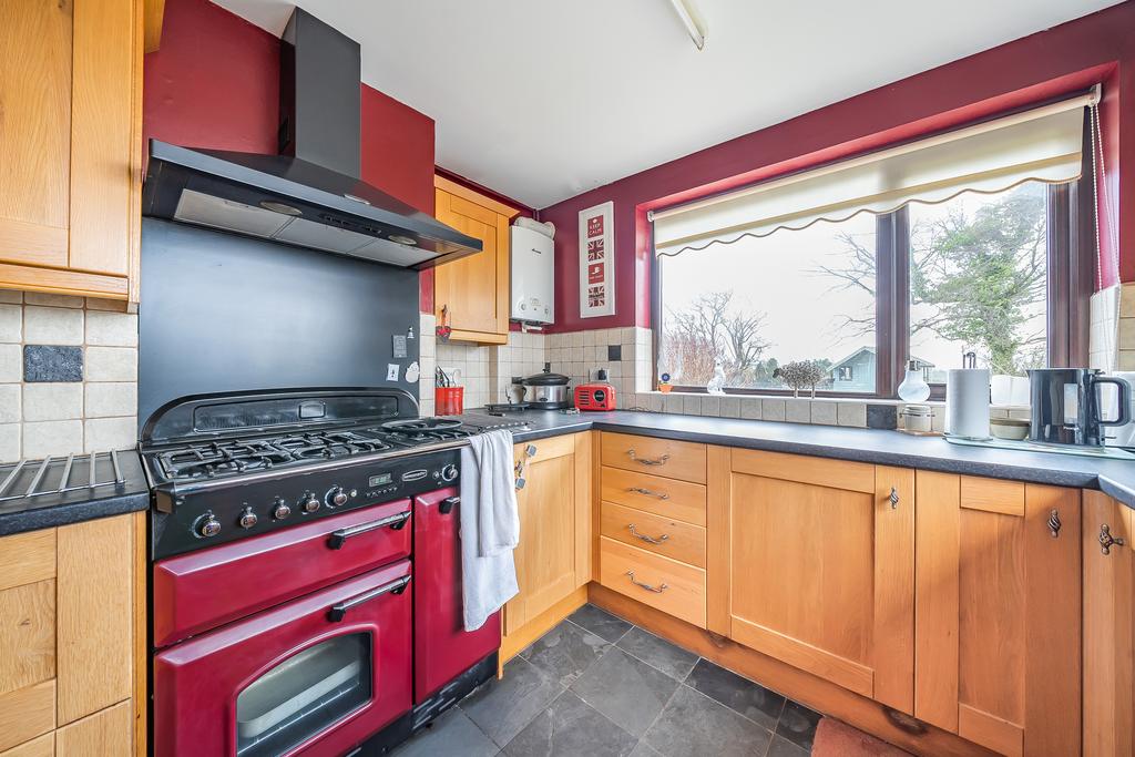 worktops, stainless steel sink and drainer, rangemaster five burner hob, tiled splashbacks