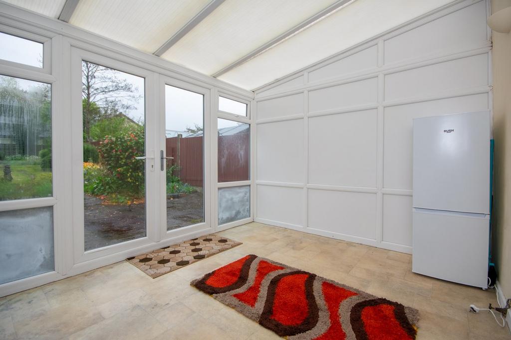 3.4m x 3m (11' 2" x 9' 10") having tile effect flooring and sloping polycarbonate roof and UPVC double glazed double doors opening onto the garden