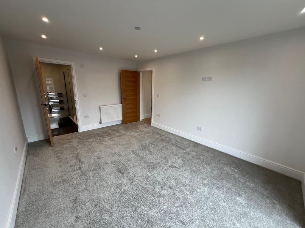 Apartment 2 is located on the ground floor and comprises of an open plan kitchen/living/dining room at the front, utility cupboard, bathroom and two bedrooms at the rear. The master bedroom has an en-suite and French doors leading to a private garden. Price £300,000.