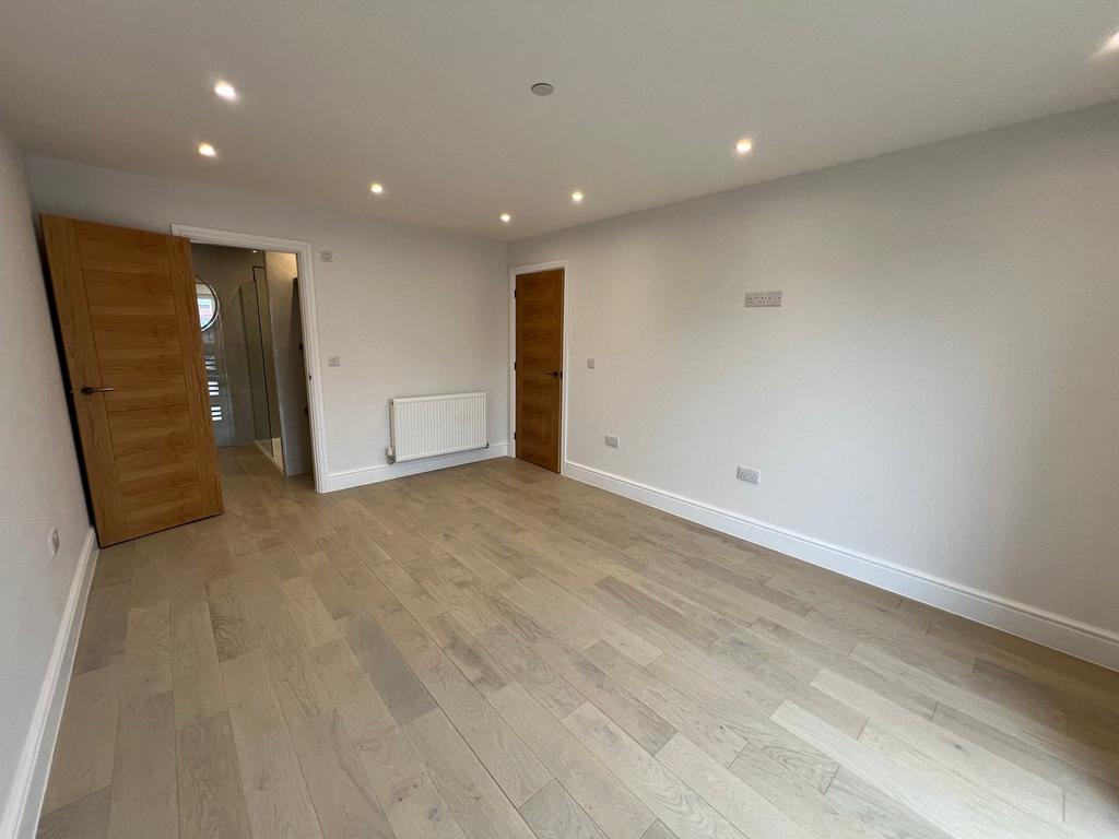 Apartment 2 is located on the ground floor and comprises of an open plan kitchen/living/dining room at the front, utility cupboard, bathroom and two bedrooms at the rear. The master bedroom has an en-suite and French doors leading to a private garden. Price £300,000.