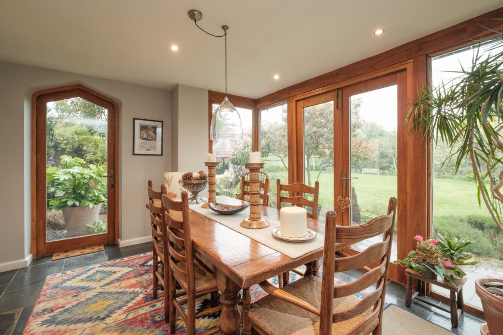 Subsequent to their arrival at the property, the current owners extended the property on the ground floor to create a magnificent, largely glass sided octagonal kitchen with vaulted, atrium style ceiling and cupola above. From the whole of this area, there are beautiful views across the landscaped gardens towards countryside beyond. Positioned adjacent to this area is the snug and dining room, whilst remaining rooms on the ground floor include a utility room and understairs store.
