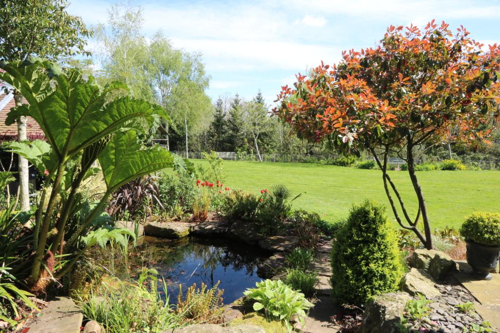 Lying between the lawn and the house, and extending for the whole of the extent of the accommodation is a wonderful, paved sun terrace which is fringed by shrubs and young trees, whilst to the north of same is the pond and amazing rock waterfall with most attractive and functional octagonal gazebo close by. Further shrubs lie adjacent to this area and extend upwards to the neat area of lawn alongside the aforementioned double garage. Shrubs here include Gunnera, Variegated Laurel, Mexican Orange Blossom, Variegated Holly and many more.