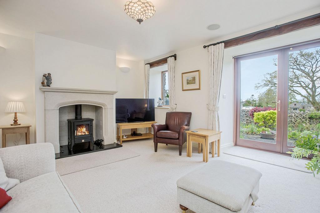 Bursting with natural light, this is a wonderfully relaxing space benefitting from private views out into the rear garden with french doors leading directly outside. The inset log burner provides a cosy touch within the limestone mantle with a black granite hearth. A feature alcove offers shelving and a place to display books and ornaments with original wooden lintels above the windows and doors.
