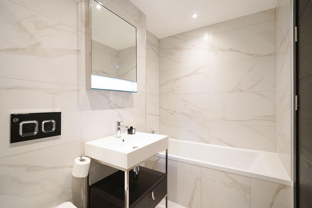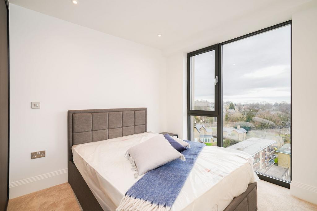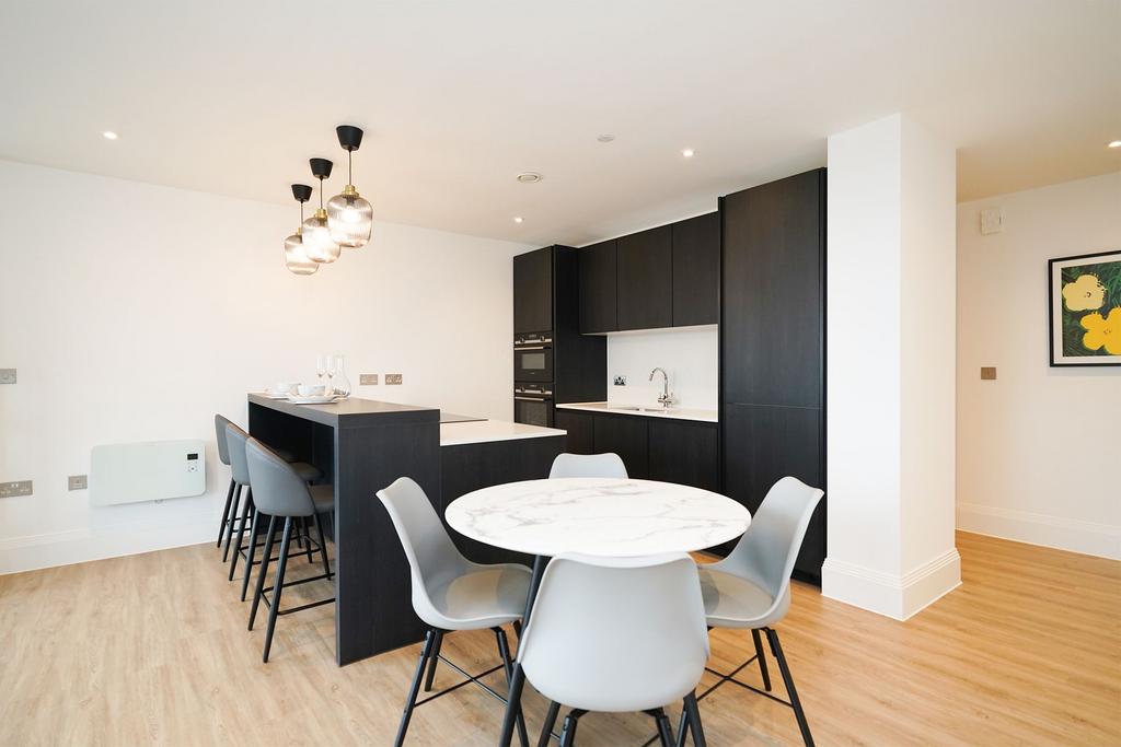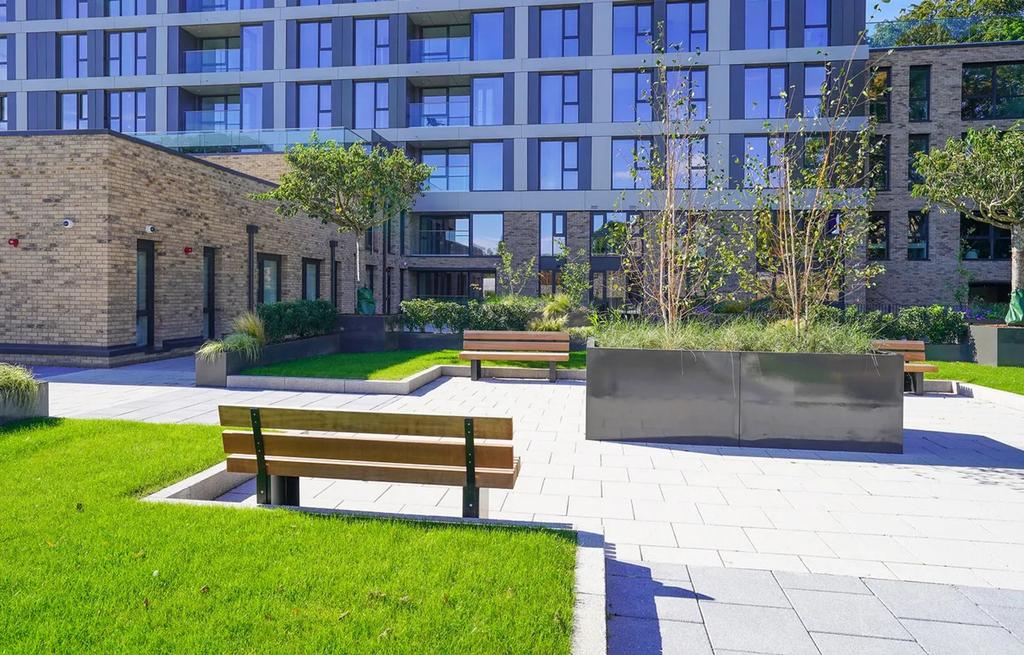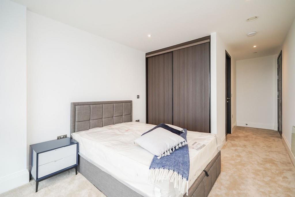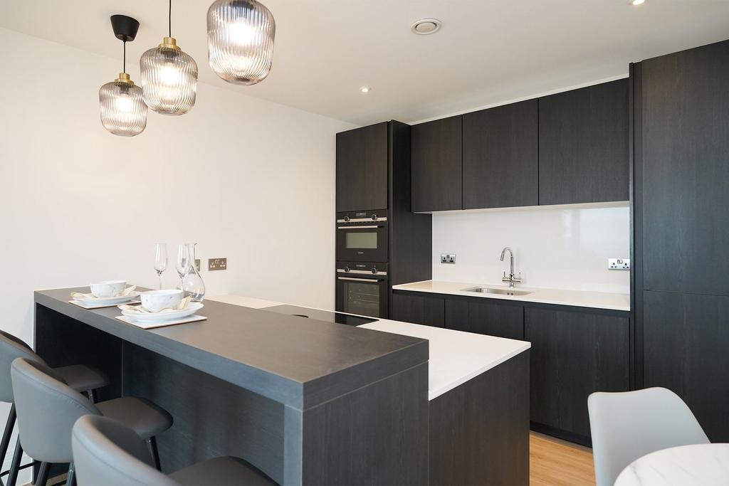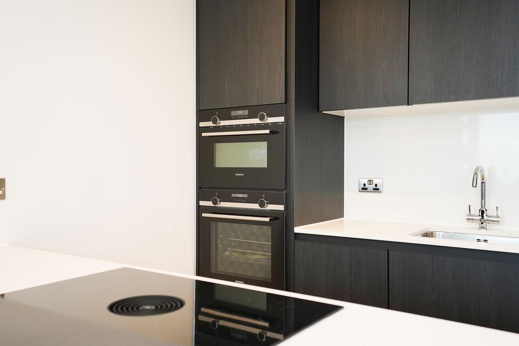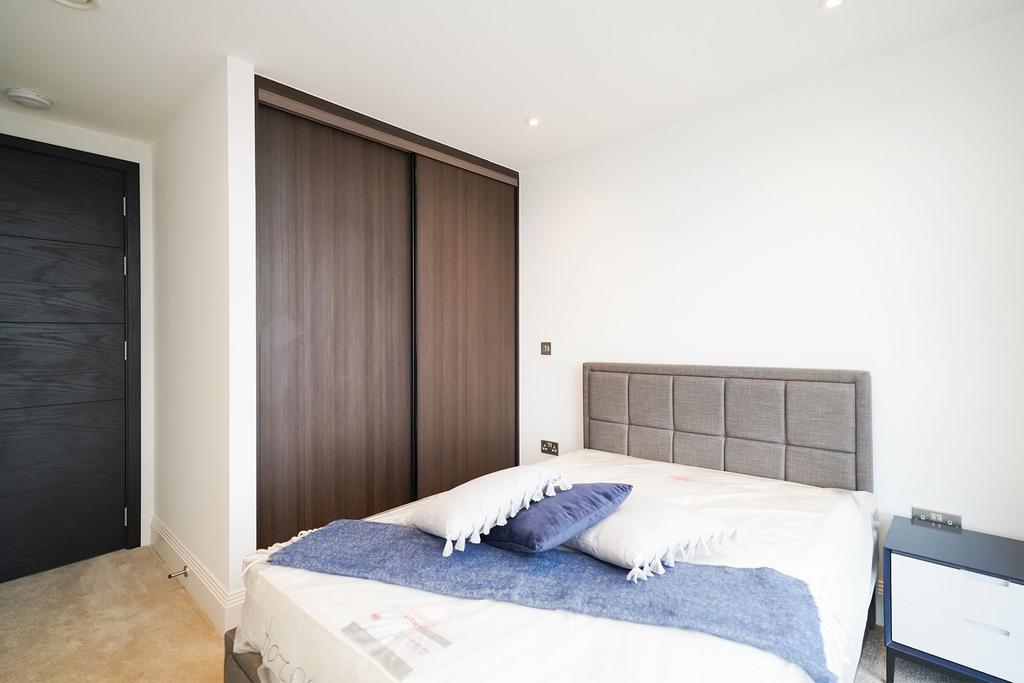 Open plan living & dining space is flooded with natural light and incorporates a balcony and fine views across the city, together with a fully integrated kitchen, complete with a range of Siemens appliances. Both bedrooms are generously proportioned doubles, with the principal featuring fitted wardrobes and an en suite. Residents can access the swimming pool, gym, and enjoy the communal landscaped grounds.