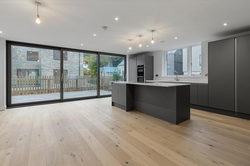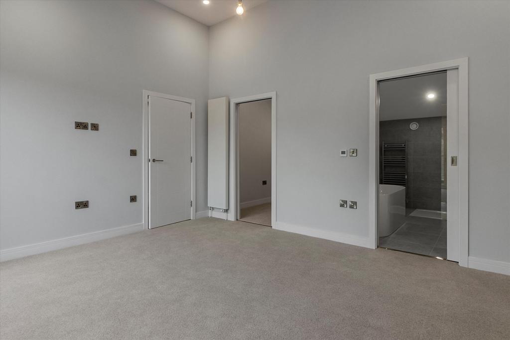 At first floor level are four bedrooms and an office room. The main bedroom is set over the integral garage with en suite bathroom, dressing room and sliding doors out to a dedicated balcony. The guest bedroom has an en suite shower room with the family bathroom serving the other two bedrooms.