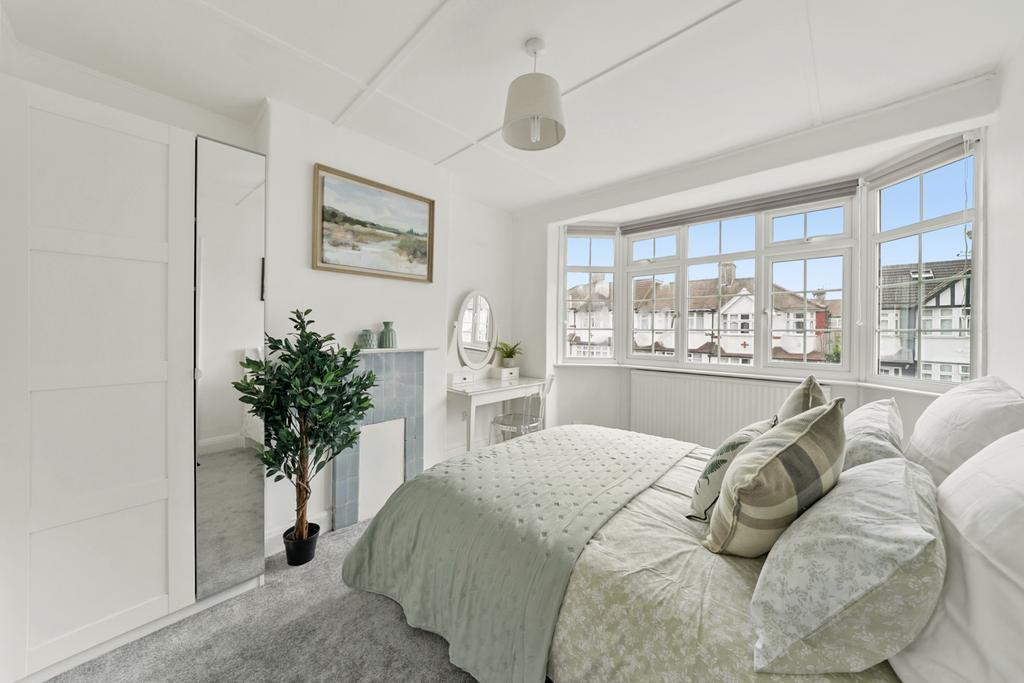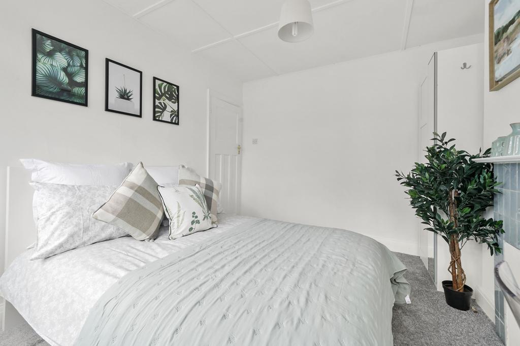 A well proportioned, fully furnished double room with neutral décor, ideal for a professional seeking a clean and quiet place to call home. The room shares access to the main bathroom with other housemates. Furniture includes a double bed and a bedside table with drawers (please refer to photos for specifics).
