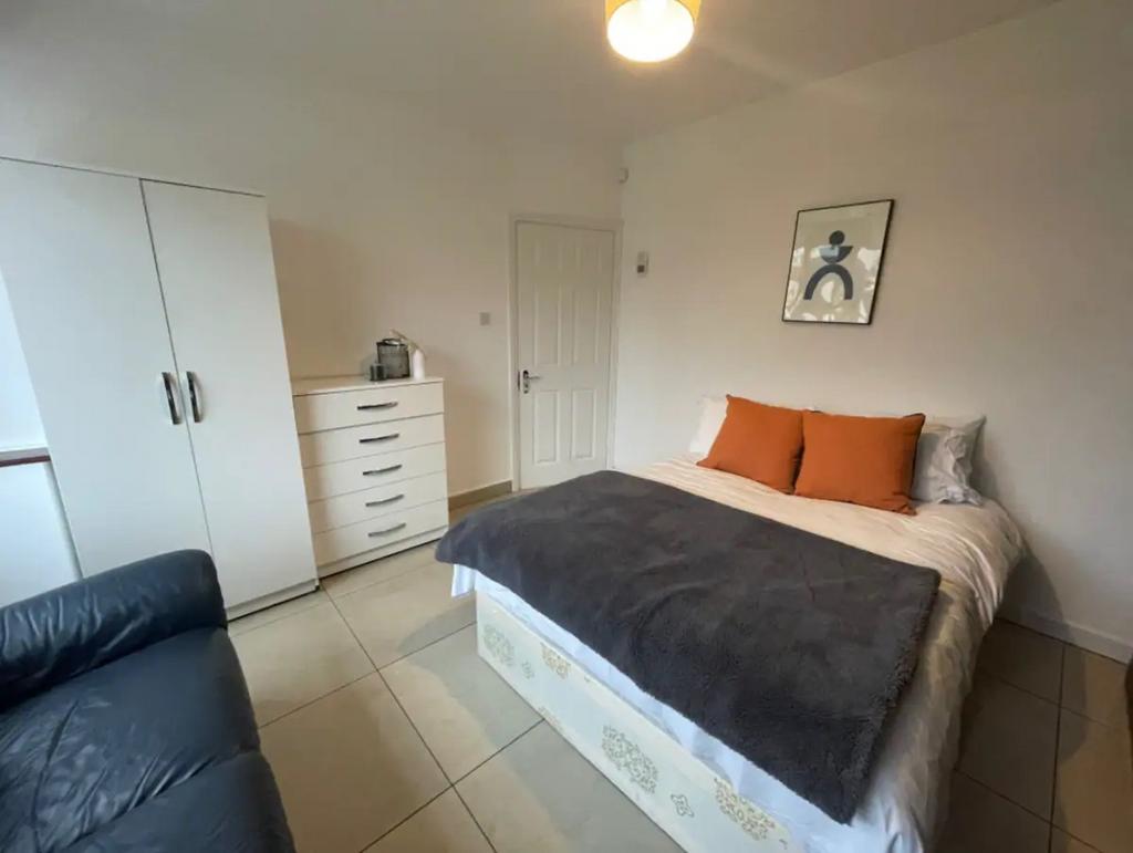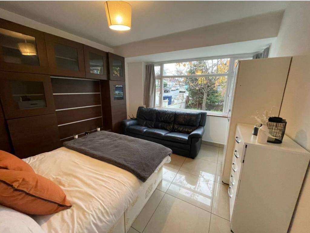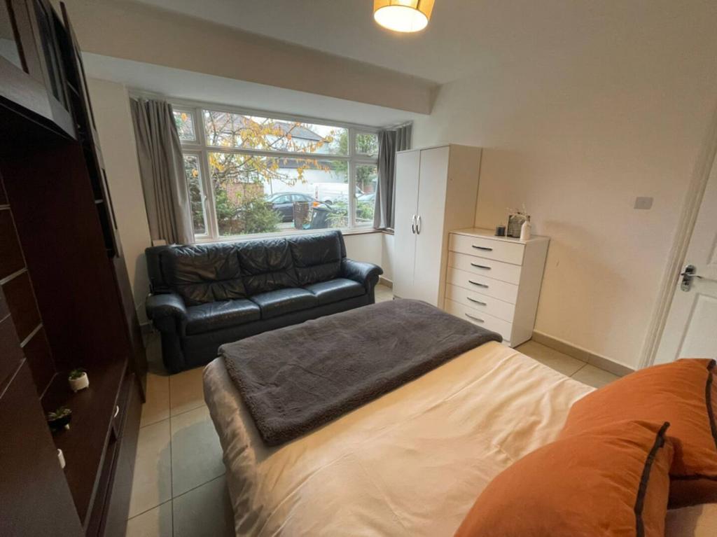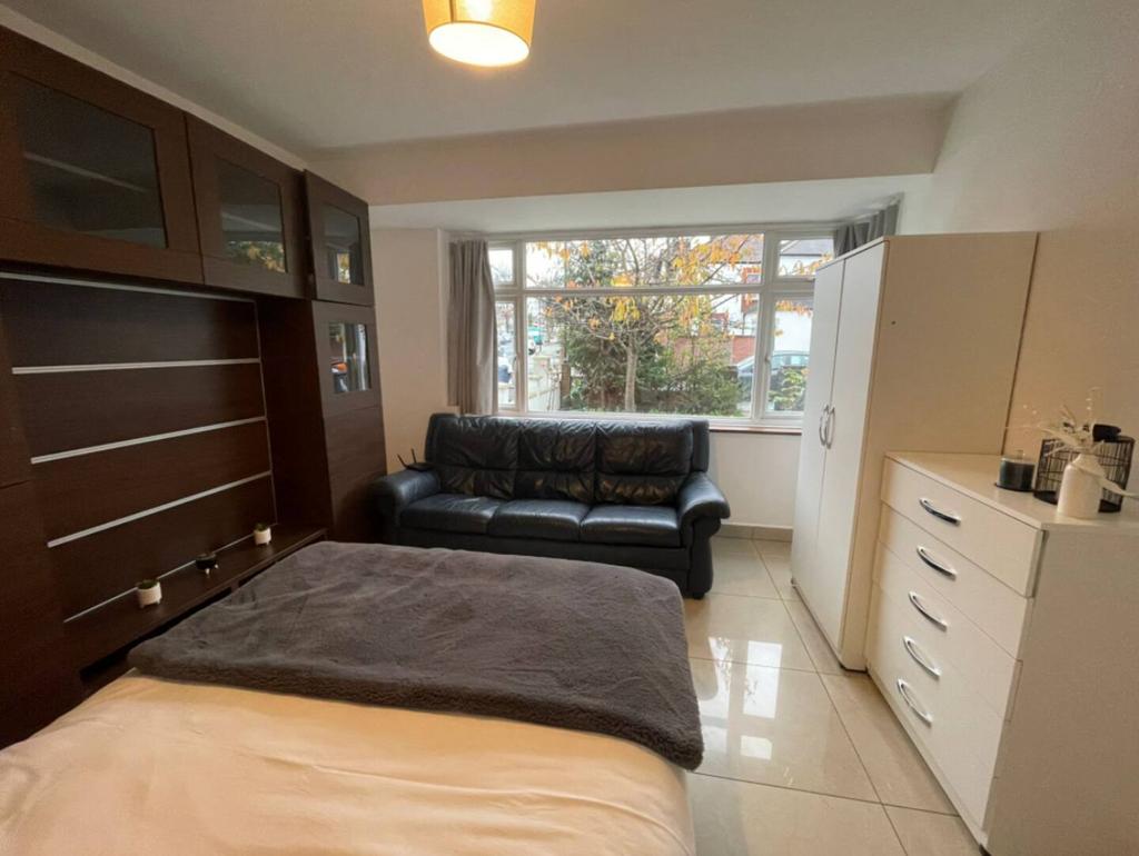 A well-proportioned, fully furnished double room with neutral décor, ideal for a professional seeking a clean and quiet place to call home. The room shares access to the main bathroom with other housemates. Furniture includes a double bed, chest of drawers, wardrobes and a sofa (please refer to photos for specifics).