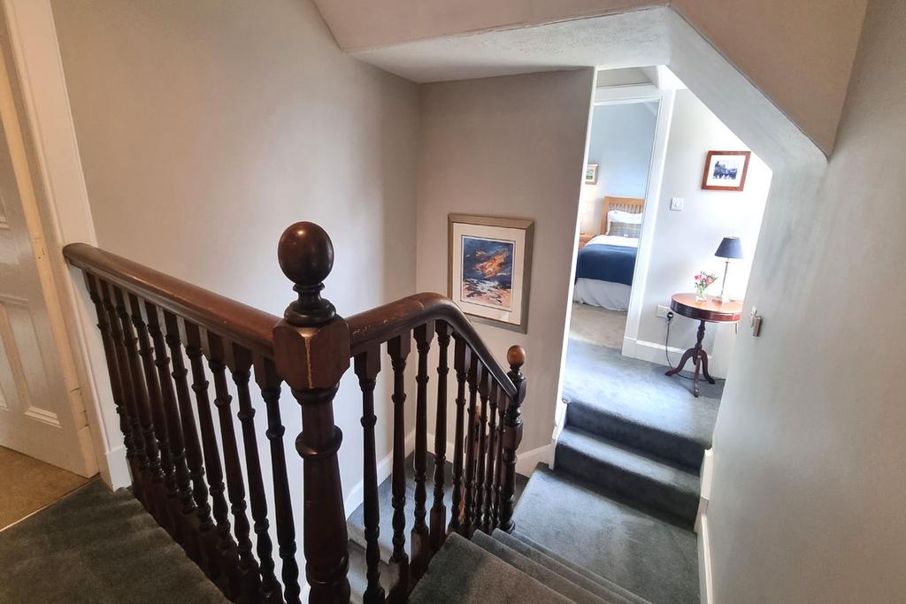 The traditional timber staircase, with balustrade, half landing and window to the side, leads up to the first floor.