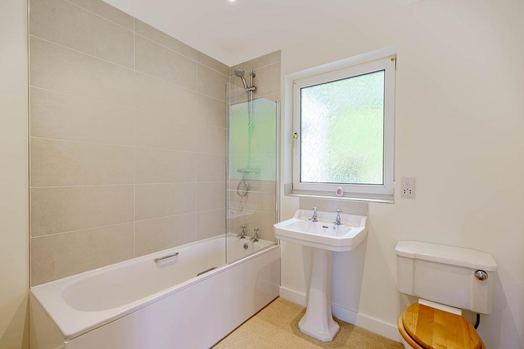 Entrance to the property is gained from the front door which opens to a spacious hallway with doors leading to the rest of the accommodation. The living room is bright and welcoming, with an area for dining off the kitchen. We are led to believe the flooring under the carpet is polished hardwood flooring. The kitchen is modern and new, fitted by Howden’s, featuring an integrated single electric oven with Lamona electric hob, overhead extractor, plenty of storage units and a fitted dishwasher, integrated washing machine and integrated fridge freezer, as well as a large cupboard which stores the newly installed Baxi boiler. There is a back door providing access to the garden and rear path.