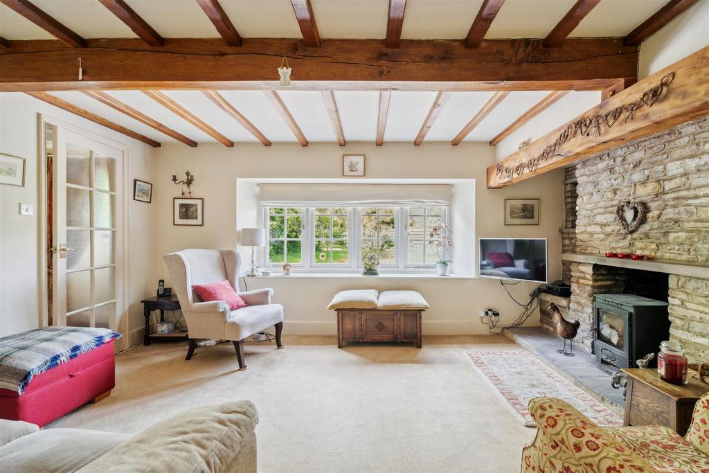 Kitchen - 3.28m x 3.23m (10'9 x 10'7) - Refitted range of base and eye level units and worktops, tile splashbacks with single sink and drainer. Building appliances include oven, hob, extractor and built-in dishwasher. Original beams and double glazed casement window to rear. Door to:-