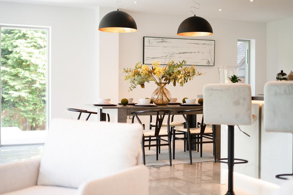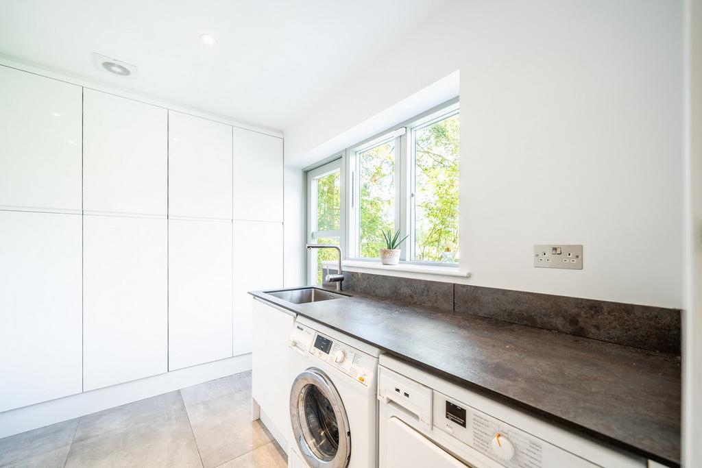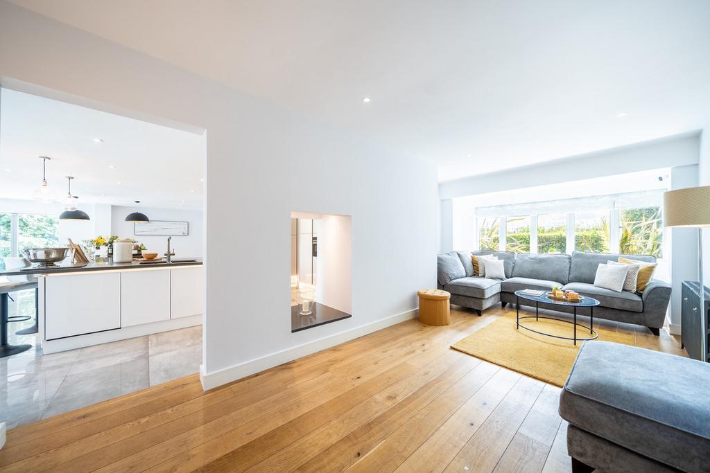 The open-plan area extends to a versatile second sitting room, perfect for a study or additional relaxation space. Completing the ground floor are a practical utility room and a convenient cloakroom.